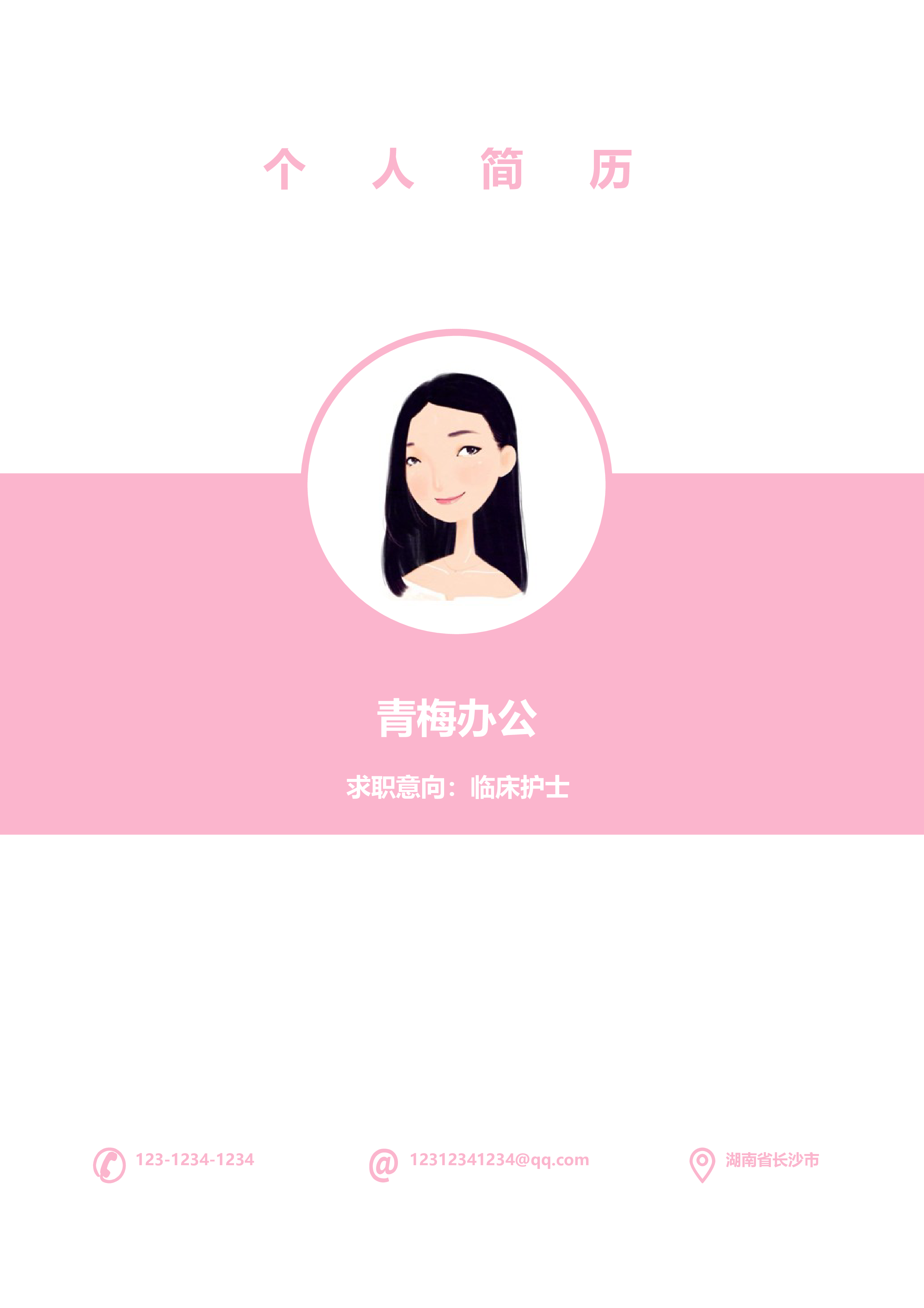 12312341234@qq.com个人简历湖南省长沙市123-1234-1234求职意向:临床护士青梅办公基本信息教育背景实习经历技能证书自我评价个人简历细心从每一个小细节开始。Personalresume2020月至2020月就读于北京联合国际大学附属中学。2020月至2020月就读于北京外国语大学国际学院卫生护理专业。主修课程:人体解剖学、生理学、医学伦理学、心理学、诊断学基础、药物治疗学、护理学基础等2014年-2016年北京市第一人名医院职务:病房护理科护士工作内容:负责药品检查、打针、配药、病人护理、病人看护、急重病人看护、心里咨询、配合护士长完成日常工作等2016年10月-12月...